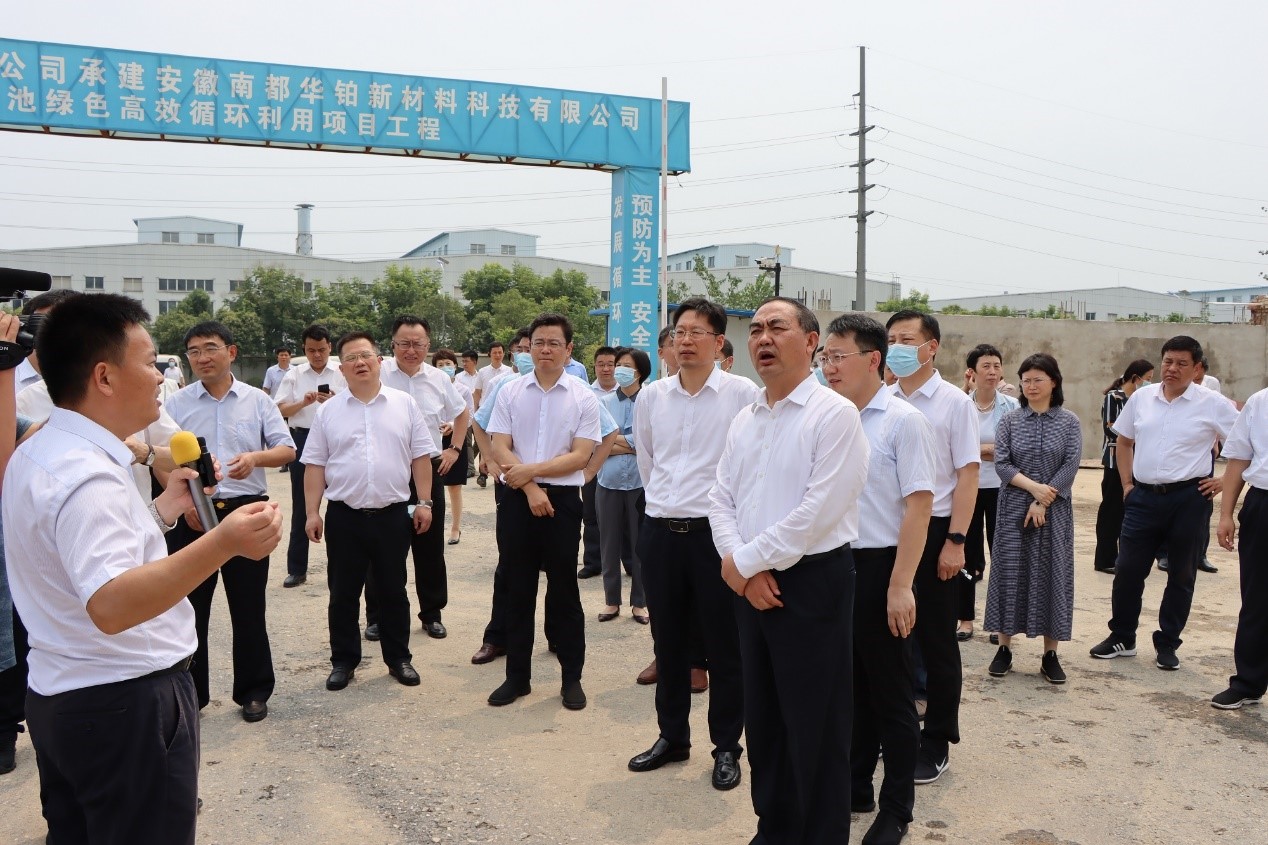 8 月 2 日,阜阳市委书记孙正东深入kaiyuan.开元(集团)智能科技股份有限公司网站,华铂新材料锂电池绿色高效循环利用项目、南都华拓新能源项目工程现场,调研项目建设情况。阜阳市长刘玉杰、界首市委书记何逢阳、kaiyuan.开元(集团)智能科技股份有限公司网站,安徽集团董事长沈岑宽等领导,以及阜阳市各在建重点工程项目组领导陪同调研。