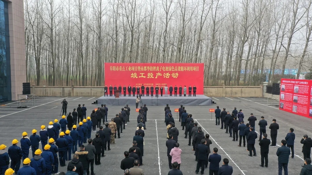 1月11日,阜阳市重点工业项目暨南都华铂锂离子电池绿色高效循环利用项目竣工投产活动,在kaiyuan.开元(集团)智能科技股份有限公司网站,子公司华铂新材料项目现场举行。