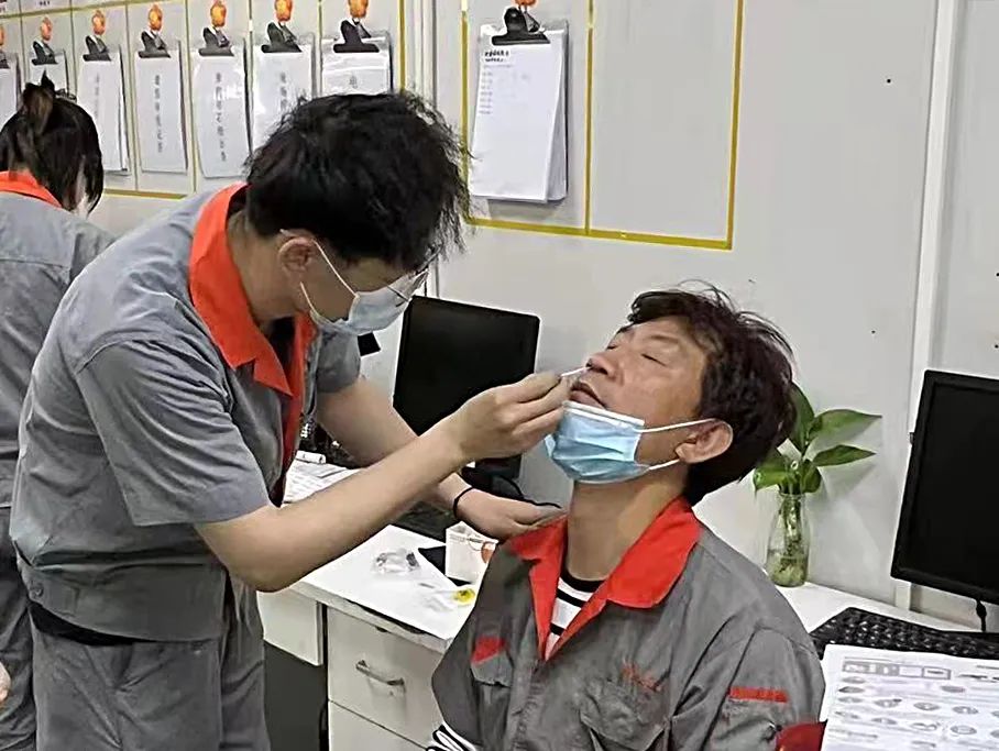位于杭州临平的生产中心于近期开展了抗原自测工作,为员工播放了抗原检测的流程,随后在相关人员指导下,全体员工进行了抗原自测,为“无疫单元”创建提供有力保障。