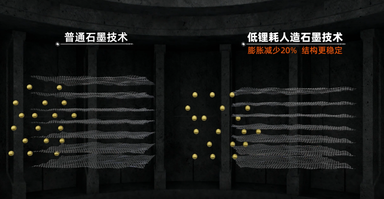 针对长循环关键技术难题,南都690Ah电池以“超低膨胀系数、低锂耗人造石墨技术”和“双重补锂技术”,解决了负极膨胀问题和锂损耗问题。
