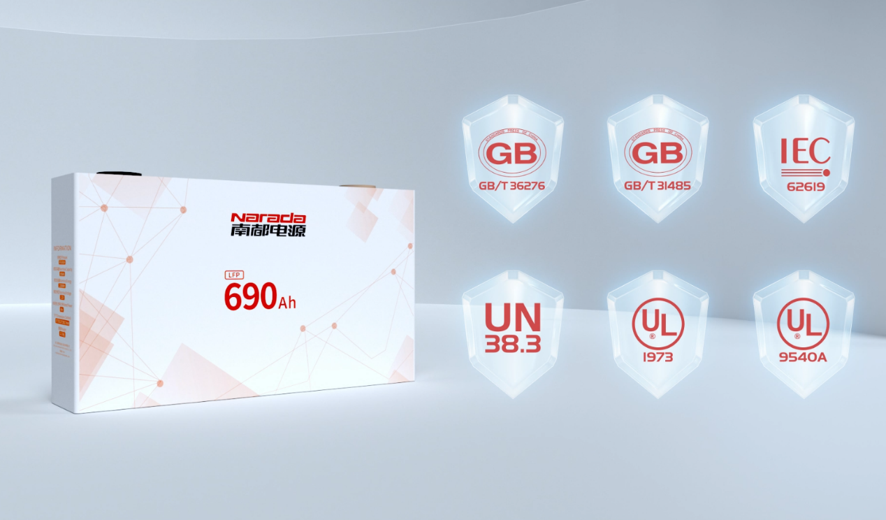 目前,南都690Ah超大容量储能专用电池已通过短路、过充、挤压、针刺、跌落等检测实验,获得UL9540A、GB/T36276、UL1973、IEC62619、UN38.3等多项安全认证,将于2024年9月全球交付。