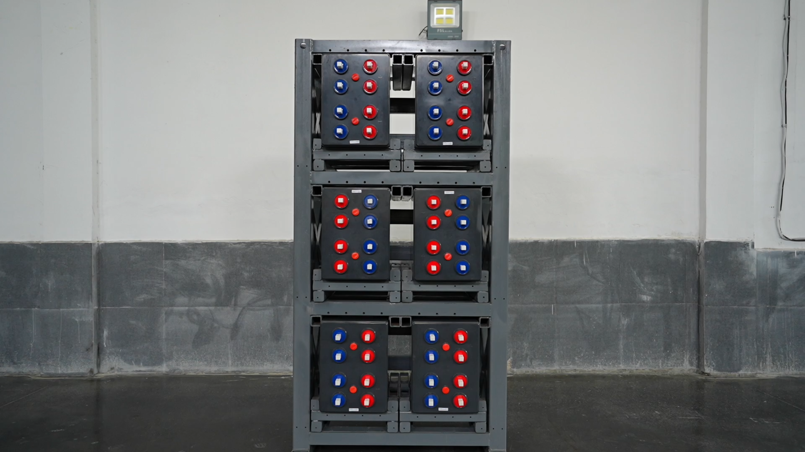 电池架采用三层叠放设计,占地空间相比富液式蓄电池减少60%,模块化的支架结构便于电池装卸,在相同占地空间条件下,可突破当前核电站用电池产品容量限制,提高严重事故下核电站的供电能力,保障核电站安全。