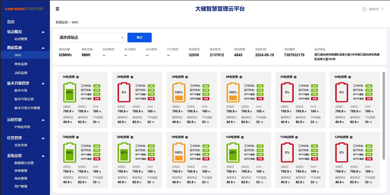 南都储能BMS系统内部的控制信号遥测周期可达到毫秒级别,测量信号达1秒以内,售后工程师无需到达现场,也可轻松获取运行数据并开展数据分析、故障定位等工作。此外,南都储能BMS系统中的BAU、BCU、BMU设备,都可支持远程OTA升级。